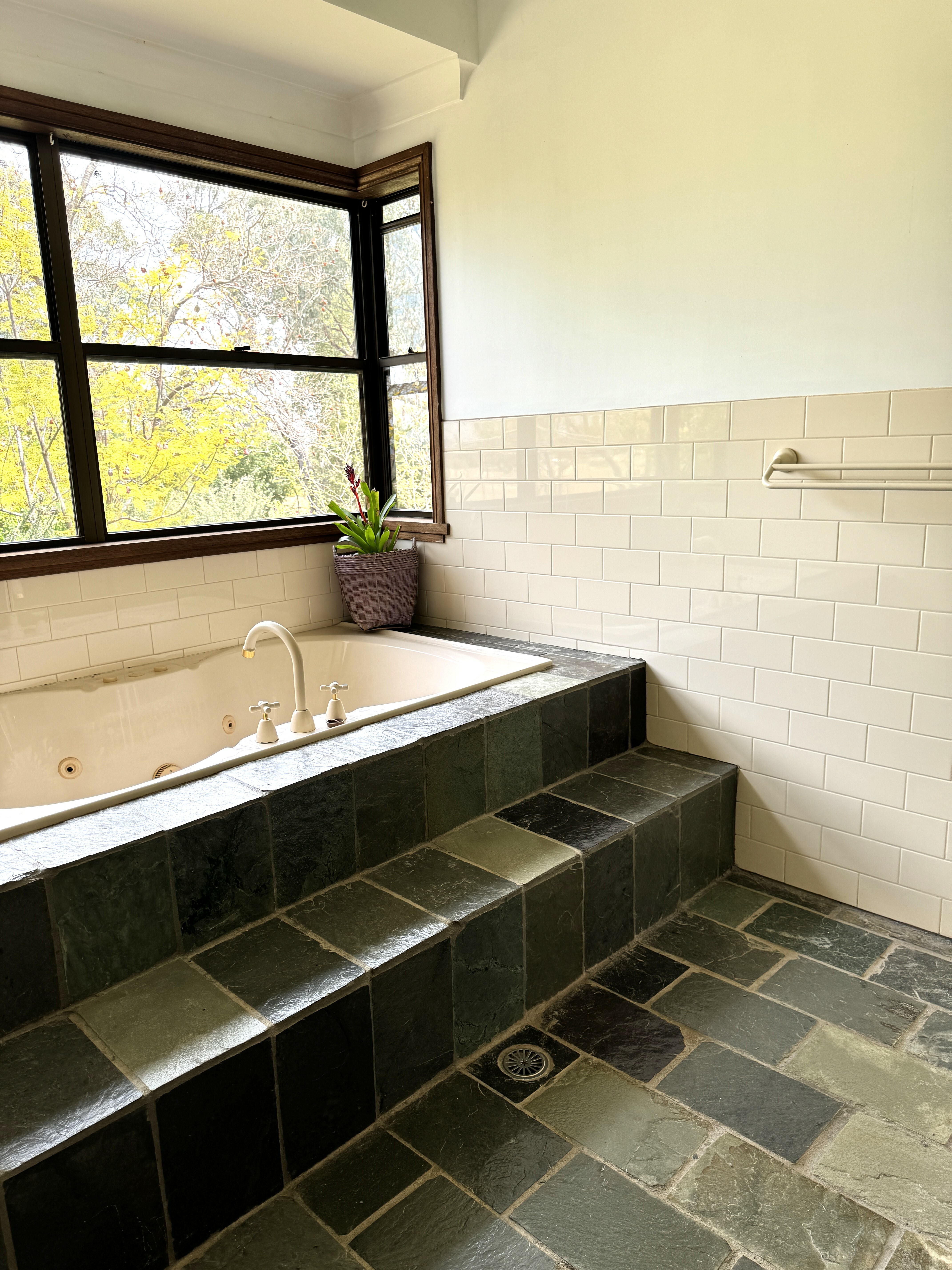 Soak your days worries away in the main 3 way bathroom with the sunken spa bath overlooking rural views an landscaped gardens.