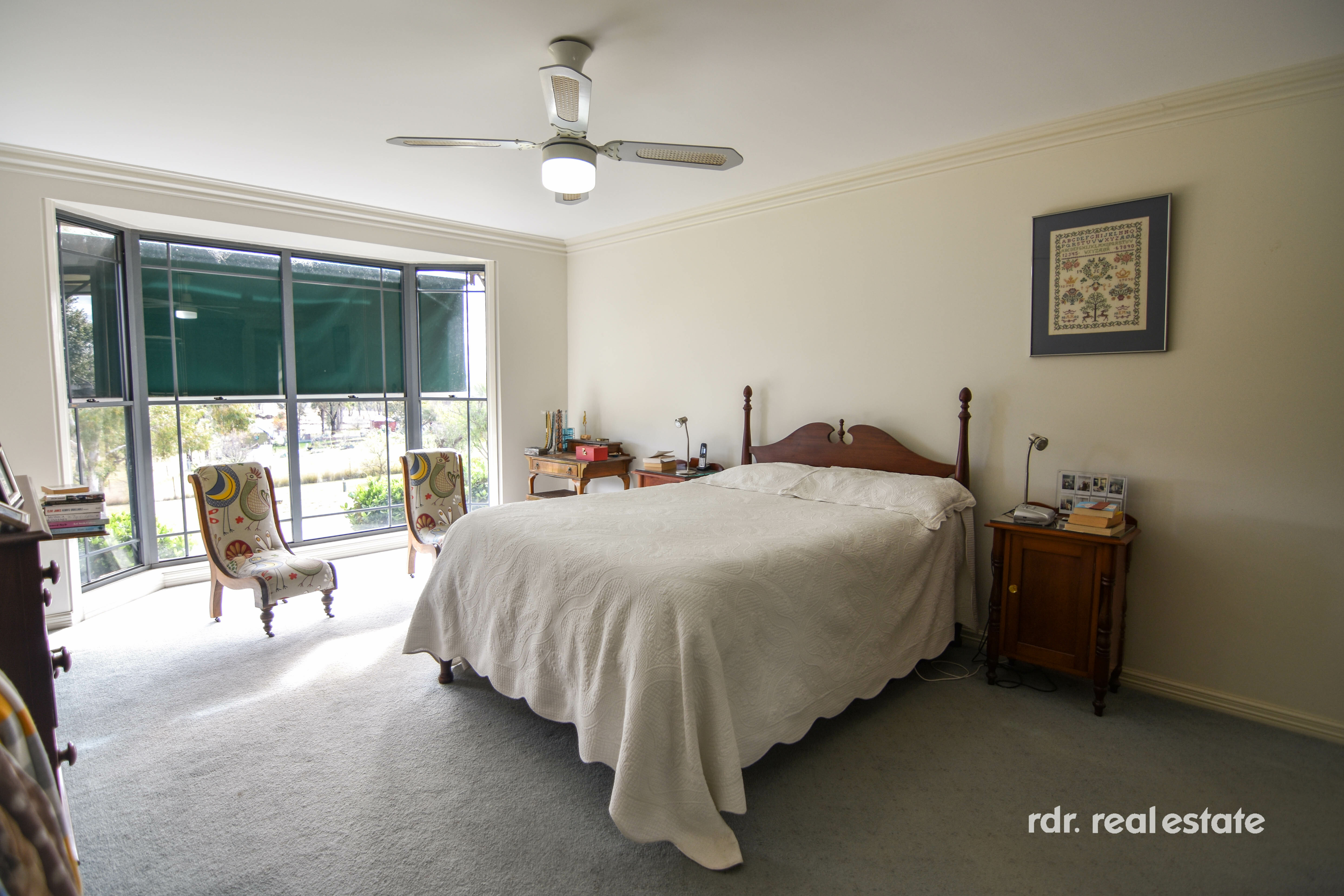 Wood heating provides warmth and ambiance during the cooler months, and the reverse cycle air conditioning and ceiling fans ensure year-round comfort.