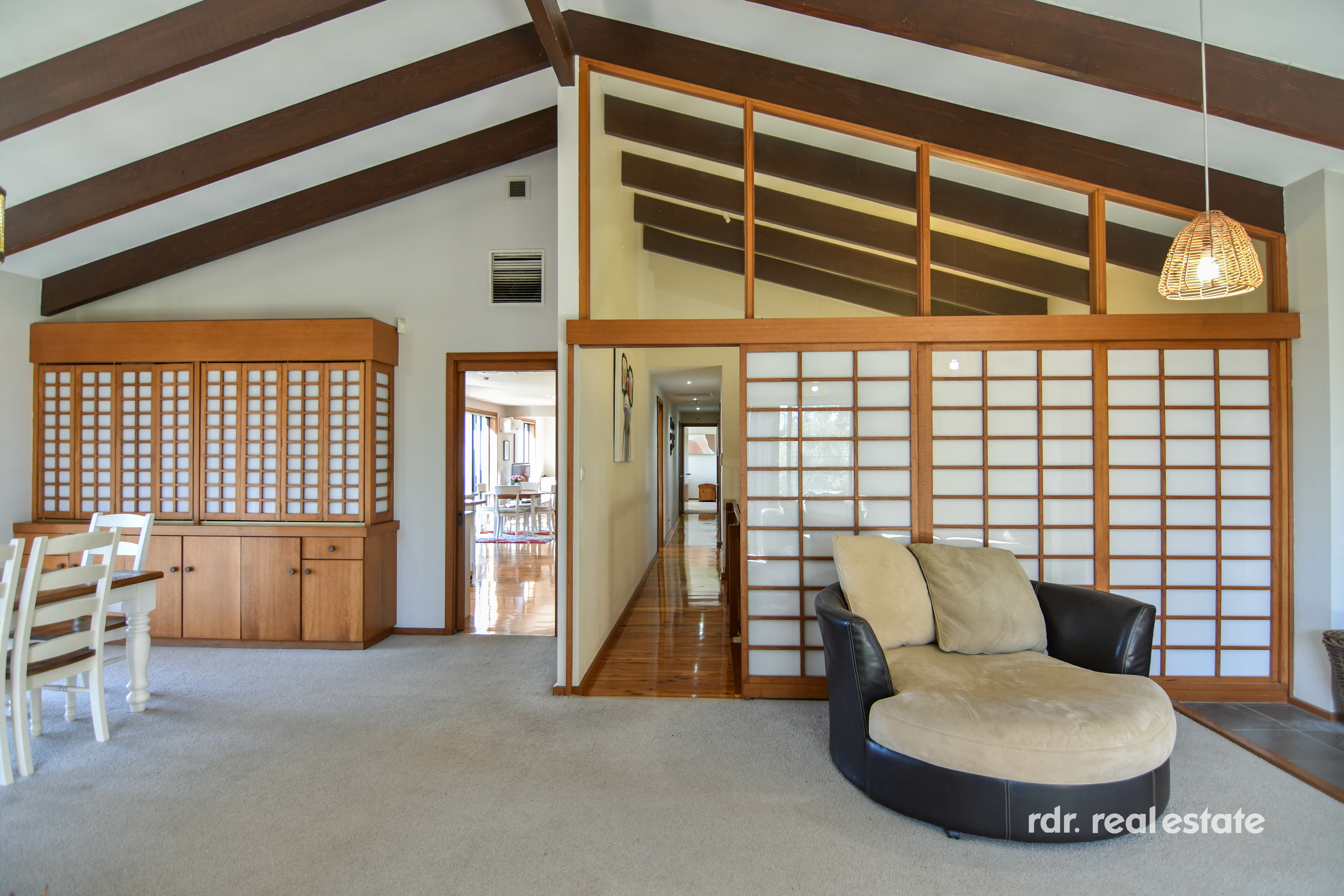 From the moment you enter, you will be impressed by the quality, size and striking features, creating an inviting and warm atmosphere. The delightful entrance gives you a sense of "WOW" while you cast your eyes up to the soaring raked ceilings and exposed timber beams.