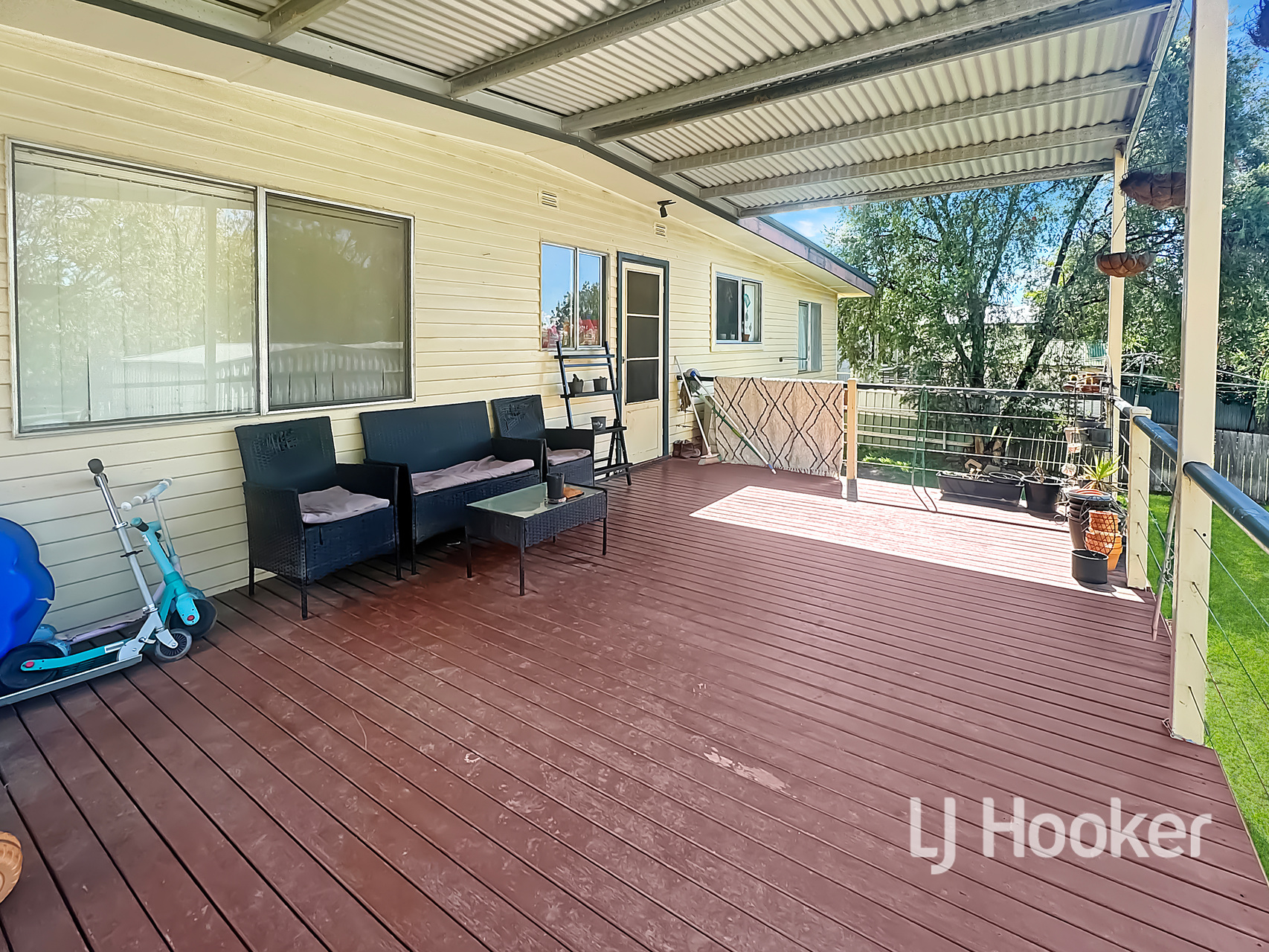 - 4 Bedrooms all with built-in robes - Spacious open plan kitchen/dining area - Lounge room with wood heating - Tidy bathroom with toilet & bath - 2x carports + double lock-up garage - Covered back deck